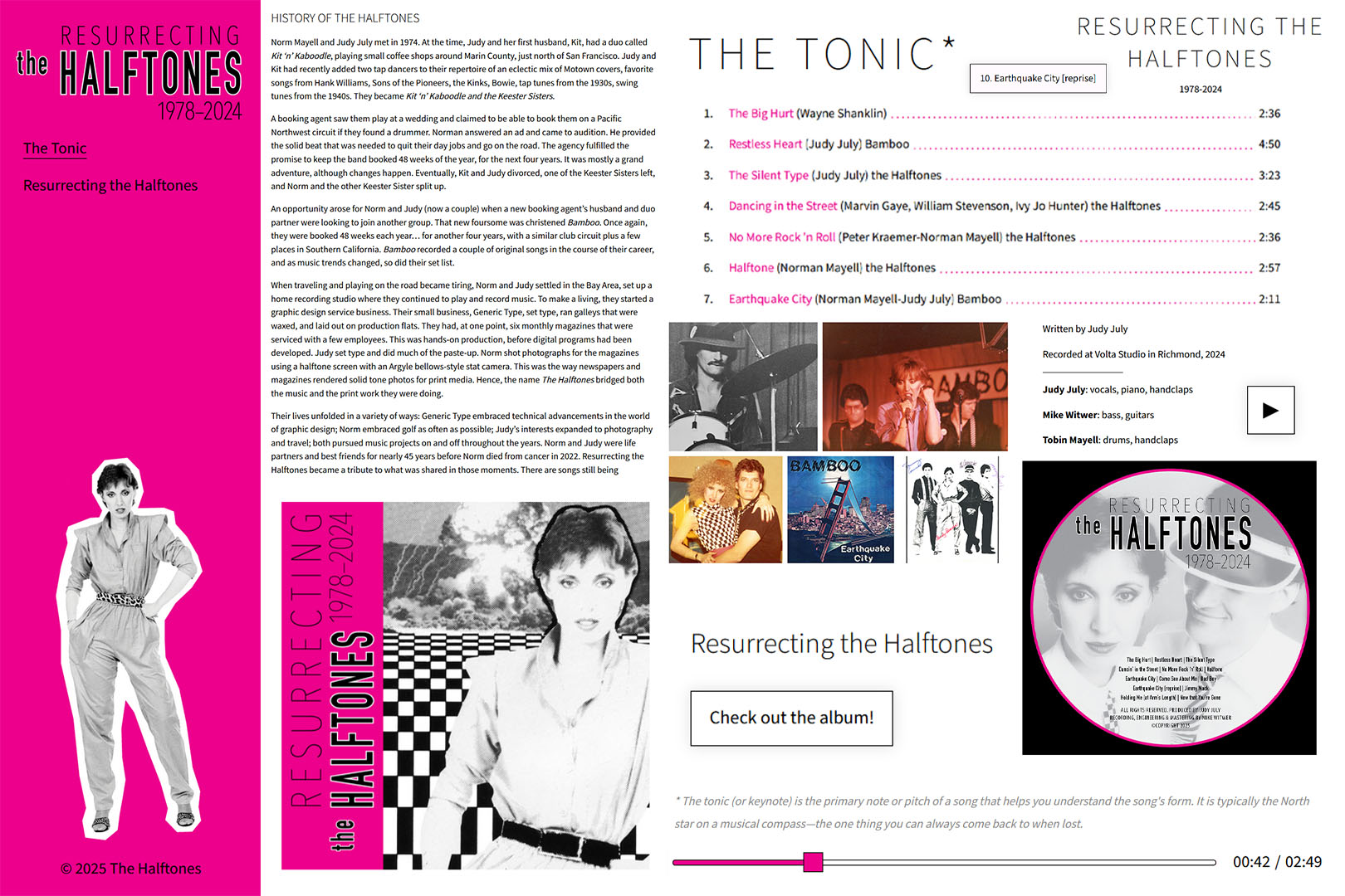 To accompany the remaster, Judy and I designed the Halftones site to be similar to the album cover, with much of the same information that was printed on the CD case. Judy is a graphic designer, so most of my design work was cut out for me, with the only hurdles being converting print design to a responsive web layout. We also included an expanded history of the Halftones as well as some pictures spanning the 40+ years that they made music. I highly recommend checking it out, especially because the entire album is available to listen on the site for free.